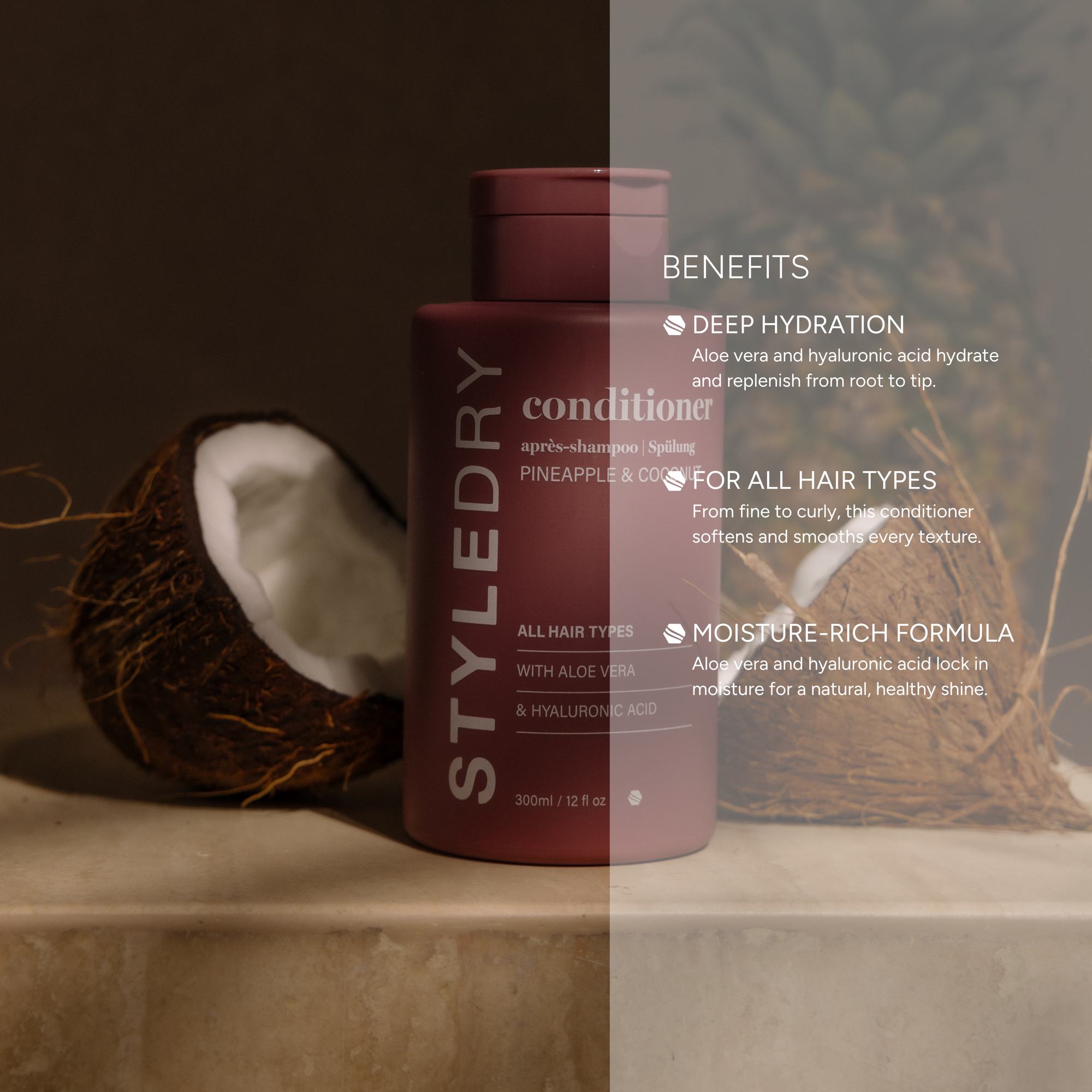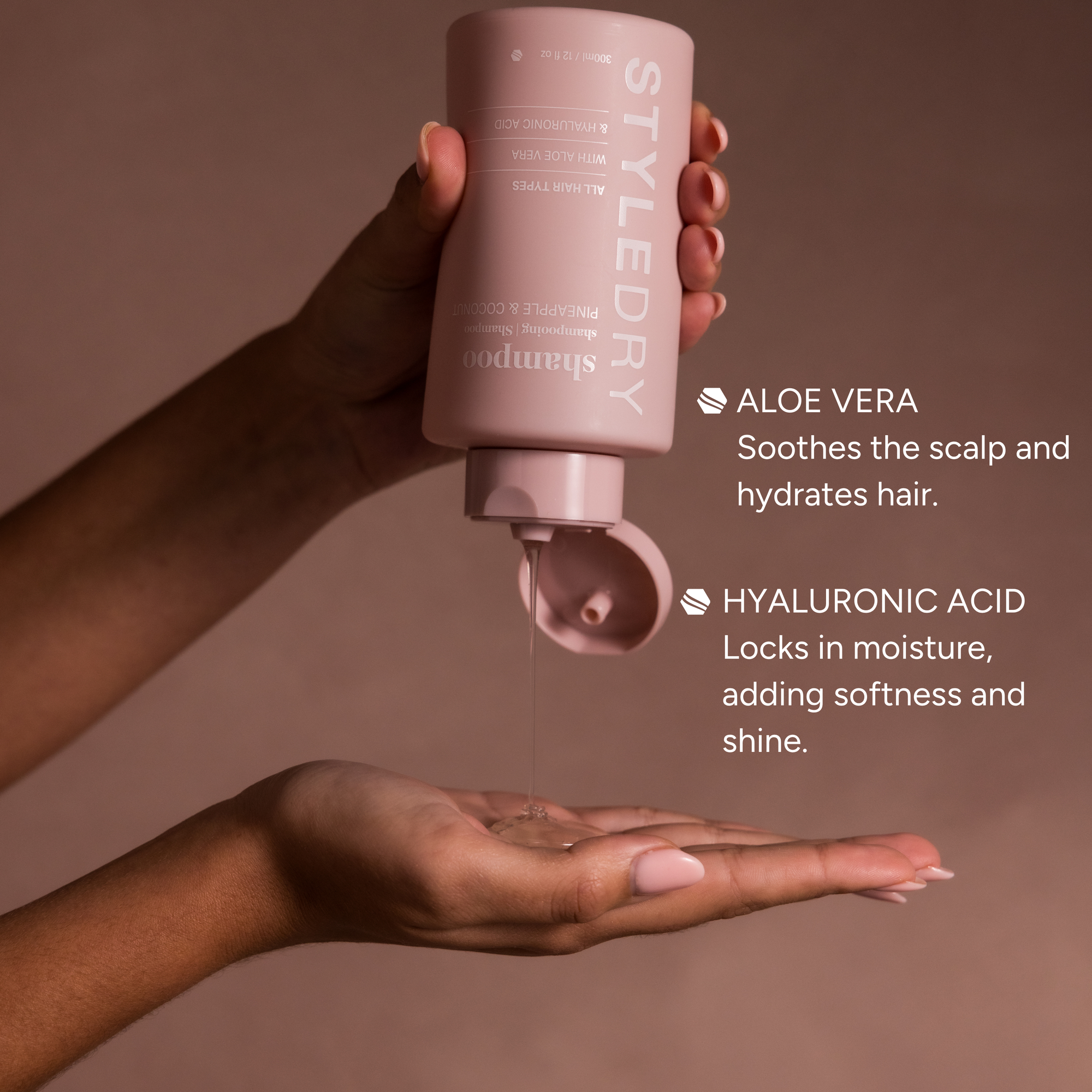 Whether you have fine, curly, damaged, or color-treated hair, the Styledry shampoo and conditioner are designed to care for your locks and protect them from external factors. With intensive cleansing and hydrating properties, your hair remains light, bouncy, and resilient—without feeling dry or weighed down.